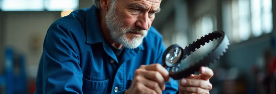 L’examen visuel exige une attention particulière aux détails. Les craquelures superficielles sur le caoutchouc, invisibles à distance, signalent un durcissement progressif de la matière. Les galets tendeurs présentent parfois des traces d’usure avant la courroie elle-même, révélant un défaut d’alignement ou une tension excessive.